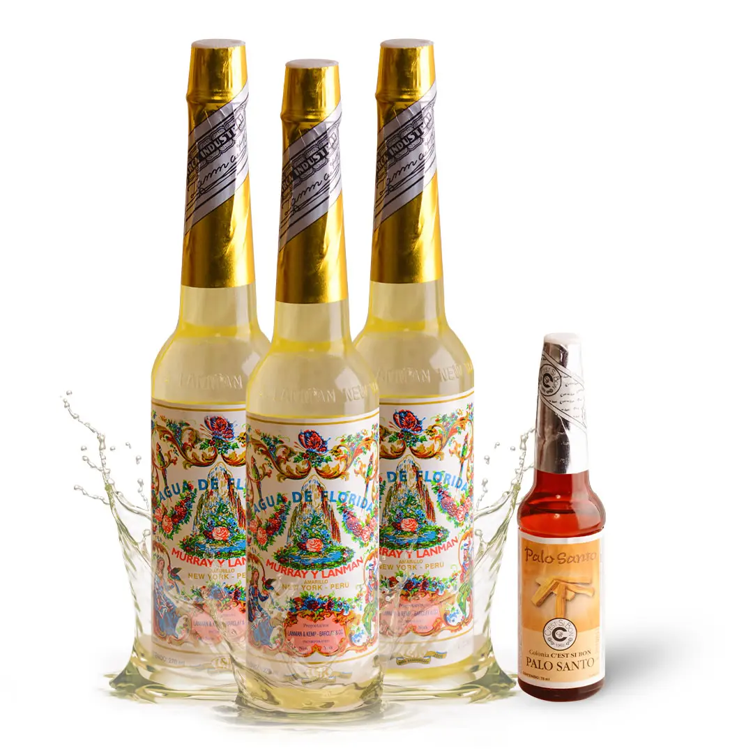 Découvrez le lot de 3 bouteilles d’Agua Florida, accompagné en exclusivité d’une petite bouteille de Colonia de Palo Santo 70ml en cadeau, pour une expérience spirituelle complète. Ce pack exceptionnel vous permet de profiter de l’efficacité de l’Agua Florida pour purifier et revitaliser vos espaces, tout en ajoutant les bienfaits uniques du Palo Santo pour une protection et une harmonisation profondes.